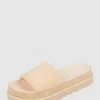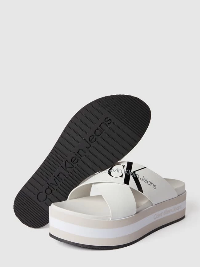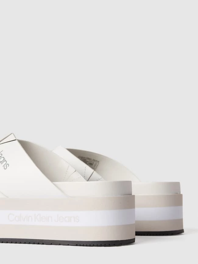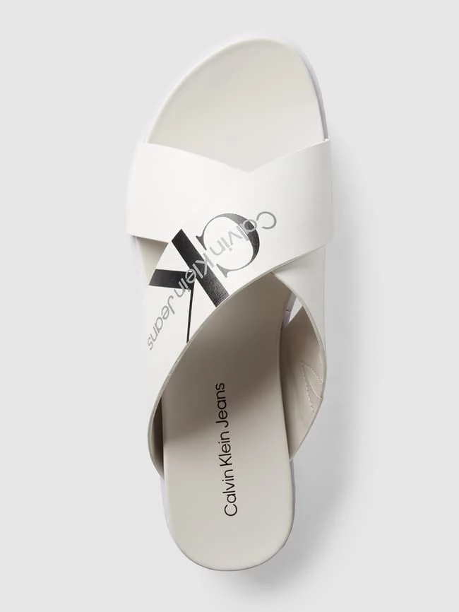 Die Pantolette von Calvin Klein Jeans ist aus echtem Leder gefertigt. Sie zeigt sich mit Plateausohle, gekreuzten Riemen und Label-Print.