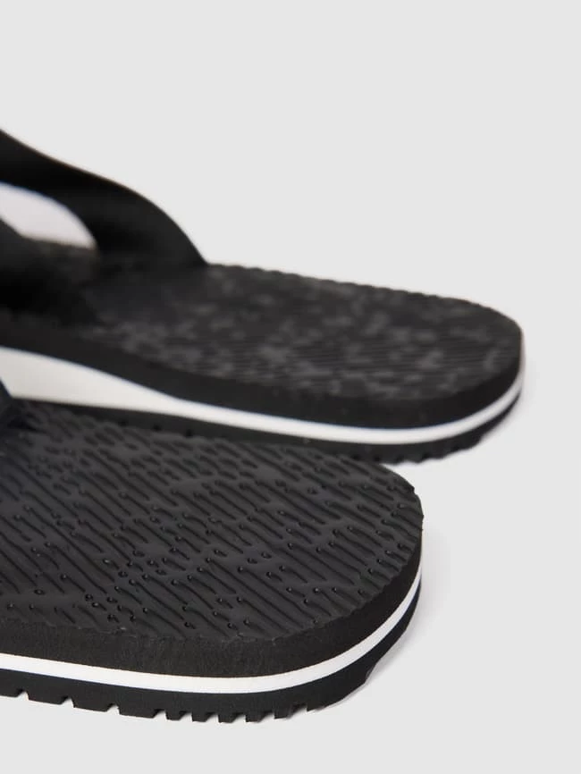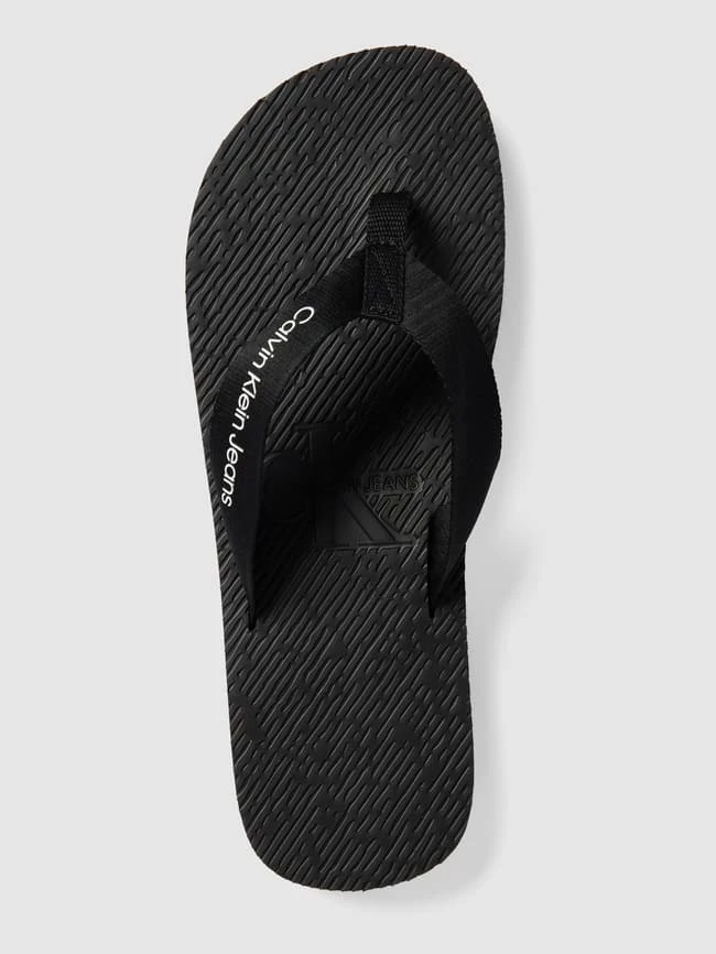 Die Zehentrenner von Calvin Klein Jeans sind aus strapazierfähigem Material gefertigt. Sie kommen im unifarbenen Design mit Kontraststreifen, Label-Print und strukturierter Sohle.