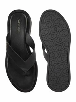 Schlussverkauf ? CK Calvin Klein Zehentrenner Aus Leder – Schwarz ?