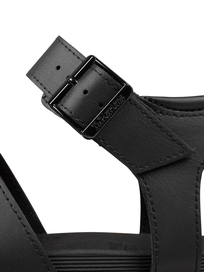 Die Sandalen von Dr. Martens sind aus beschichtetem Leder gefertigt. Sie kommen mit SoftWair Memory-Schaum-Fußbett und Plateausohle aus Gummi.