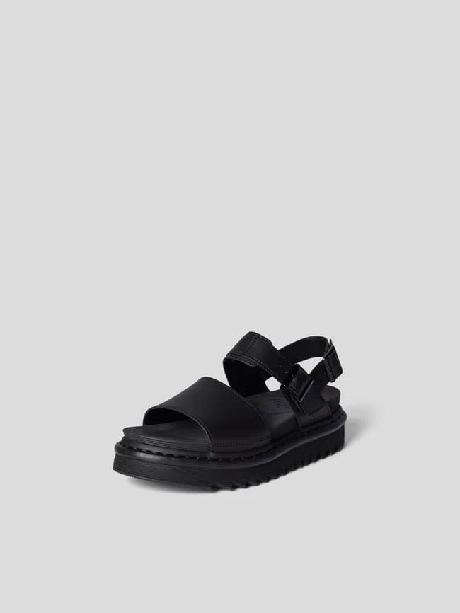 Durch das hochwertige Leder mit feiner Narbung und die profilierte Plateausohle werden diese Sandalen trendstark inszeniert. Mit der unifarbenen Gestaltung und den breiten Riemen beweist die Brand Dr. Martens ihr modisches Know-how. Mit den Dornschließen werden die modernen Designerstücke abgerundet.