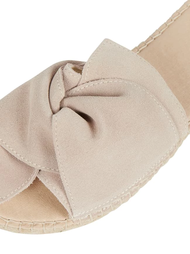 Die Pantolette von Espadrij l’originale® ist aus echtem Veloursleder gefertigt. Sie kommt mit Knotendetail, Besatz in Flecht-Optik und Gummisohle.