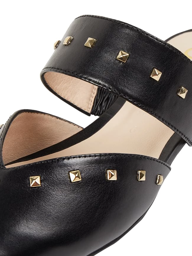 Die Pantolette von GERRY WEBER SHOES ist aus Leder gefertigt. Sie kommt mit elastischem Einsatz, Nieten und Gummisohle.