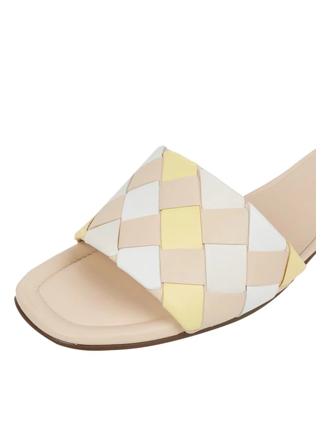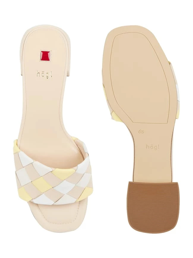Die Pantolette von Högl ist aus echtem Leder gefertigt. Sie zeigt sich in Flecht-Optik mit breitem Riemen und Gummisohle.