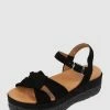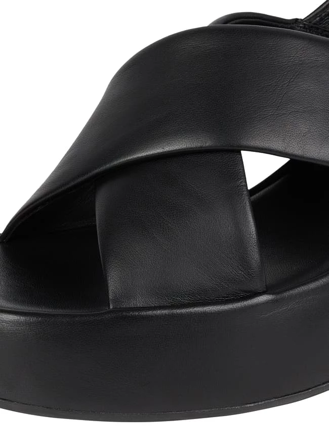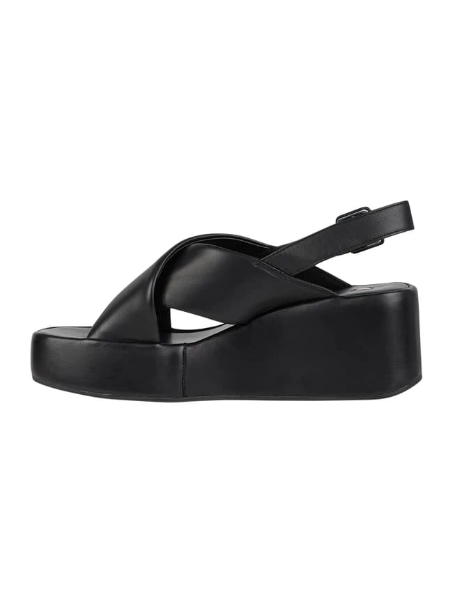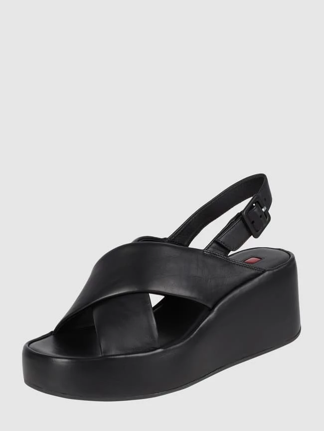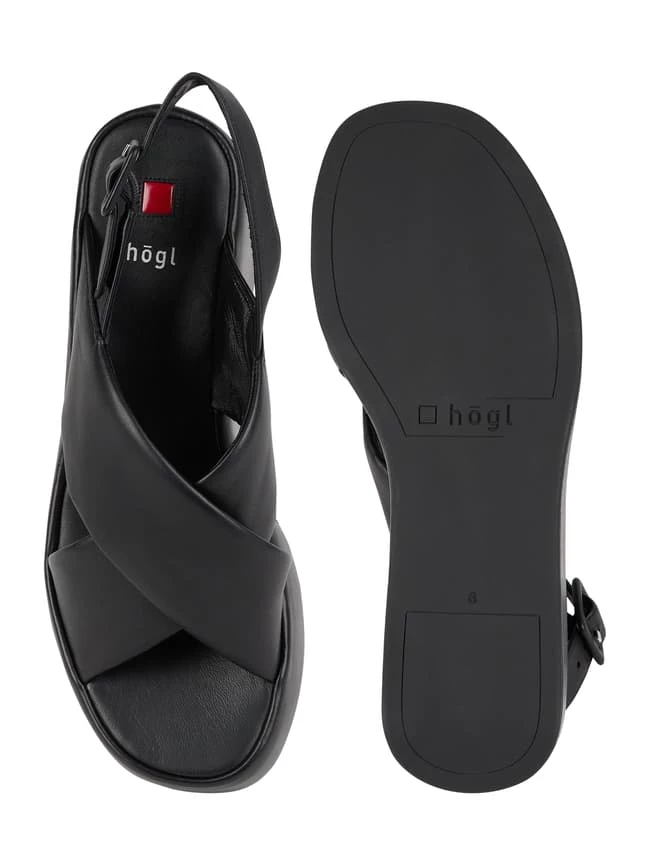 Die Sandalen von Högl sind aus echtem Schafsleder gefertigt. Sie kommen mit gekreuzten Riemen, Dornschließe und Plateausohle.