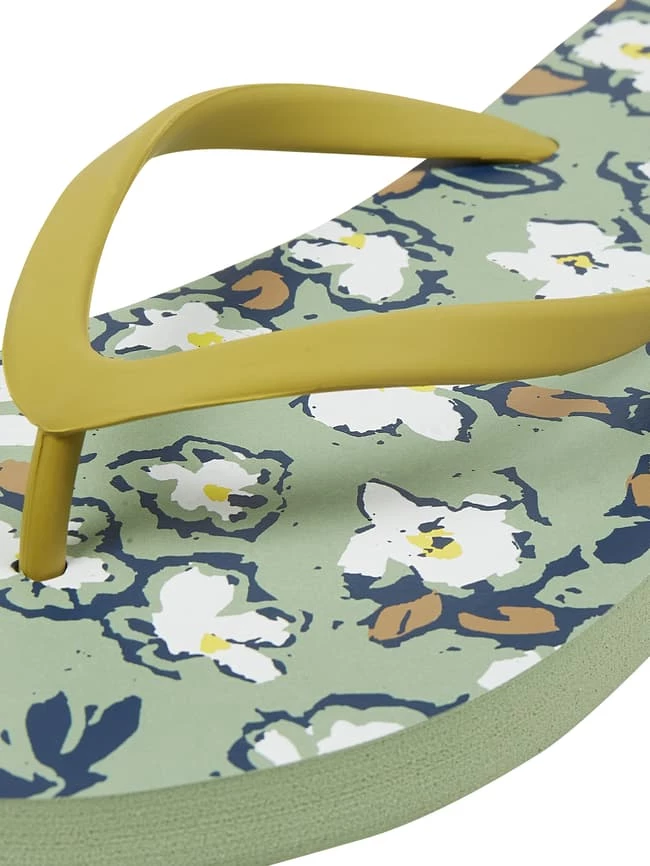 Die Zehentrenner von ICHI sind aus Gummi gefertigt. Sie kommen mit schmalen Riemen und gemusterter Innensohle.