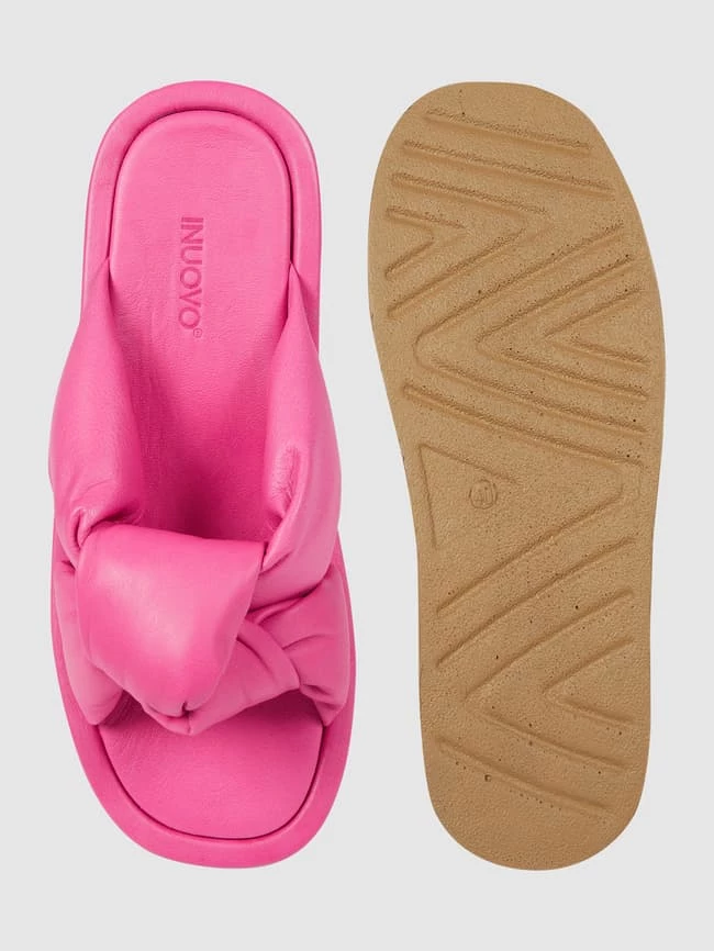Die Pantolette von INUOVO ist aus echtem Leder gefertigt. Sie kommt mit gepolsterten Riemen, Knotendetail und Gummisohle.