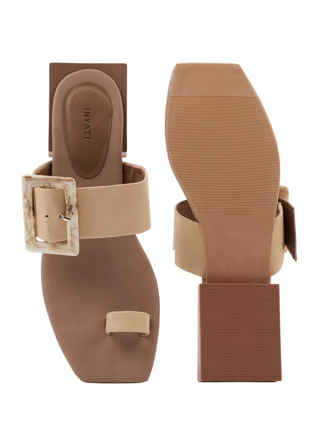 Billig ❤️ INYATI Pantolette In Leder-Optik Modell ‘Naneah’ – Beige ⭐