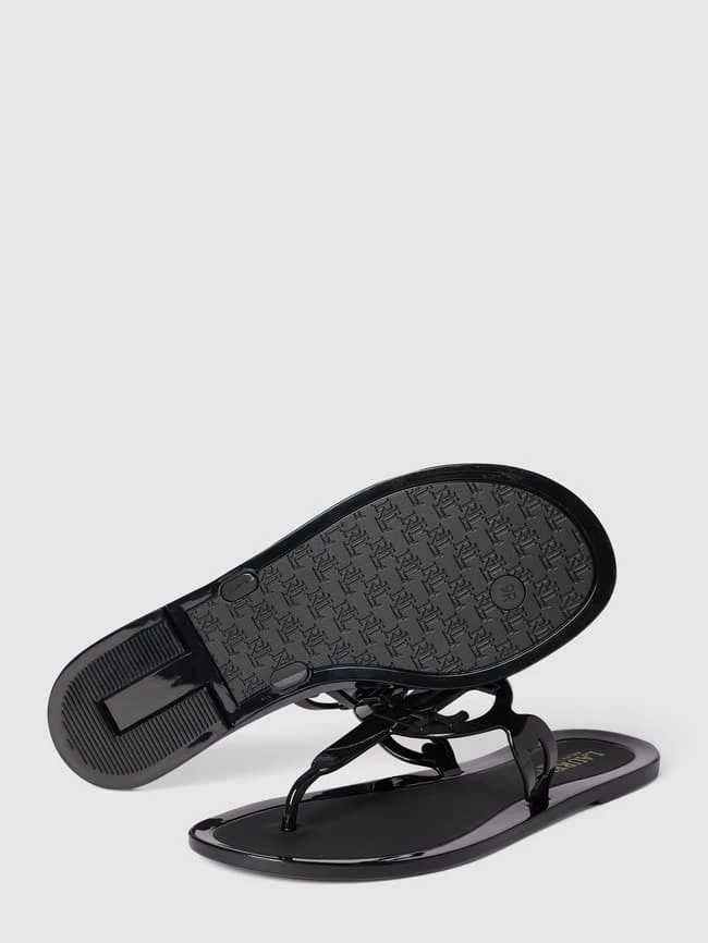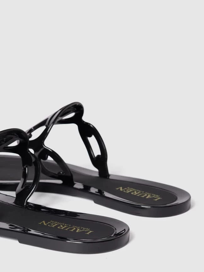 Die Zehentrenner von Lauren Ralph Lauren sind aus strapazierfähigem Material gefertigt. Sie zeigen sich mit offener, abgerundeter Spitze, Cut Out sowie Label-Detail.