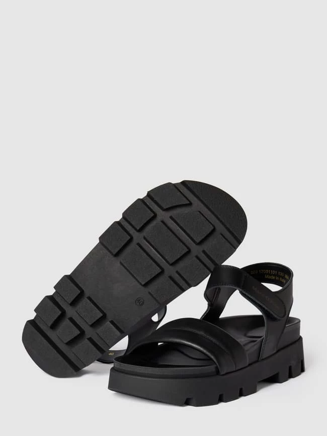 Die Sandalen von MARC O’POLO sind aus echtem Leder gefertigt. Sie kommen im unifarbenen Design mit breiten Riemen, Klettverschluss und profilierter Sohle.