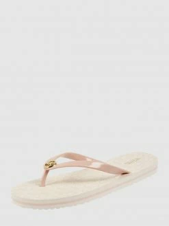 Die Zehentrenner von MICHAEL Michael Kors sind aus strapazierfähigem Material gefertigt. Sie zeigen sich mit schmalen Riemen, Logo und Gummisohle.