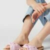 Die Wedges von Tamaris sind aus echtem Leder gefertigt. Sie zeigen sich mit gekreuzten Riemen, Keilabsatz in Kork-Optik und Gummisohle.