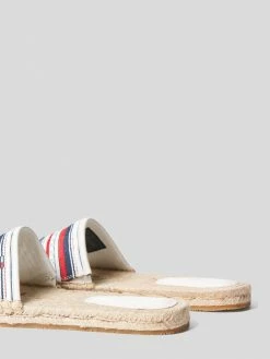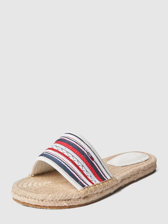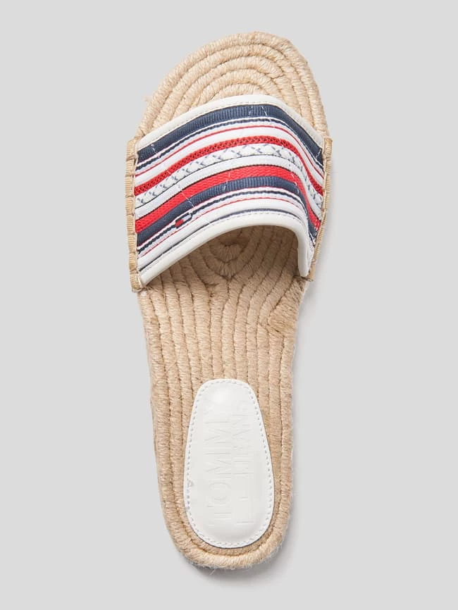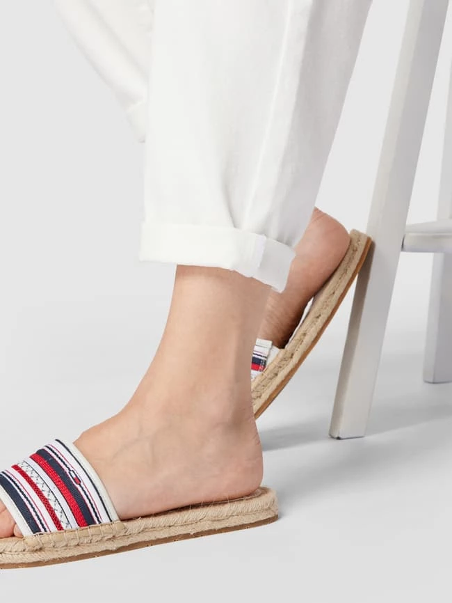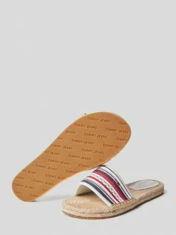 Die Pantolette von Tommy Jeans ist aus Textil und Leder gefertigt. Sie kommt mit abgerundeter Spitze, breiten Riemen mit Streifenmuster sowie Sohle in Flecht-Optik.