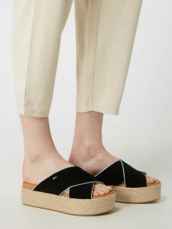 Auslauf ? Tommy ? Jeans Plateau-Pantoletten Mit Korb-Optik – Schwarz ?