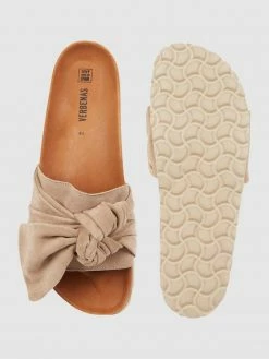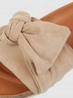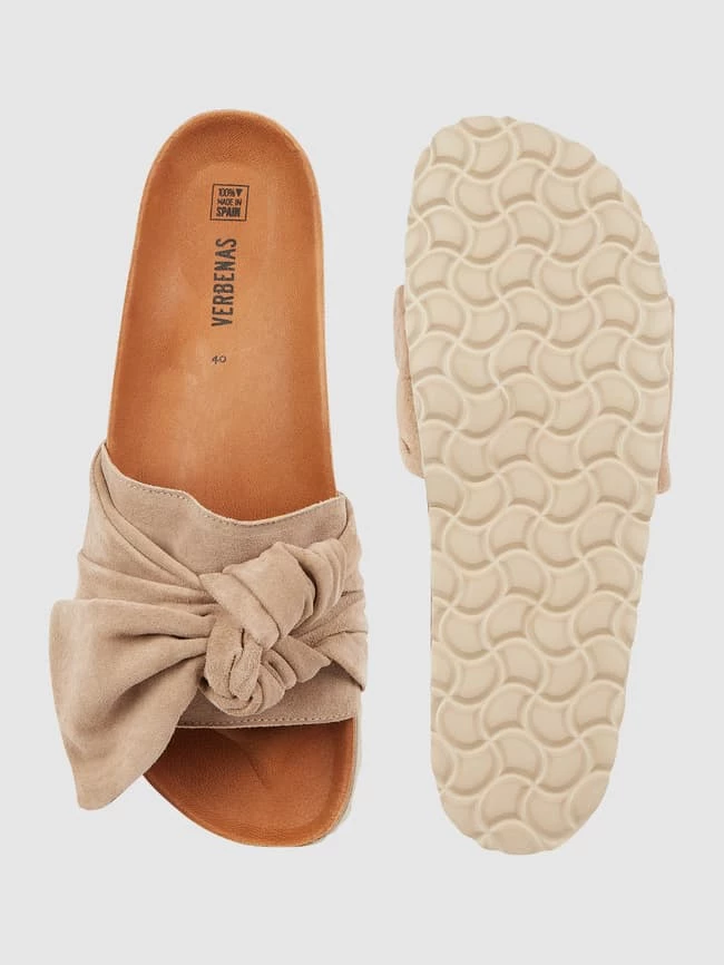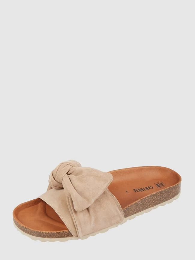 Die Pantolette von Verbenas ist aus echtem Veloursleder gefertigt. Sie zeigt sich mit breitem Riemen, Knotendetail und ergonomischem Fußbett.